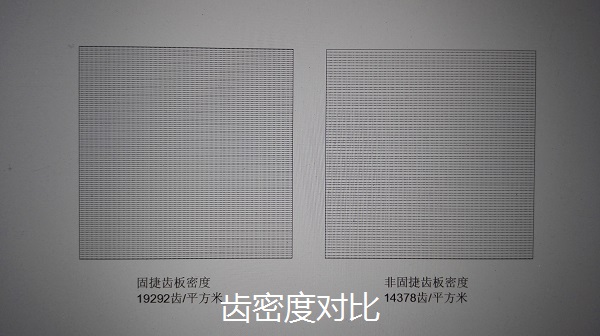固捷齒板與其它品牌齒板的對比[資料來源:固捷五金] [閱讀次數(shù):10145] [加入時間:2015年6月25日] [字號:小 中 大]不算不知道,一算嚇一跳!固捷齒板齒間距10(mm下同),間隔9,列間距2.5,間隔3;其它品牌是11.8, 13.5, 2.5, 3,計算得出固捷每平方米19292齒,其它品牌是14378齒,整整高出34.18% [驚訝]??!而這可以被理解為生產(chǎn)速度,一般客戶往往忽略了這一點! 好品質,安心省心,就選固捷! 相關鏈接:固捷齒板產(chǎn)品頁面