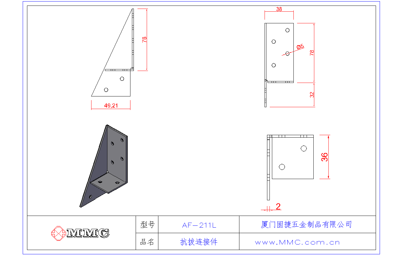 小型抗拔緊固件,適用于各種木屋龍骨或輕鋼結構墻骨與底梁(地梁)的連接。