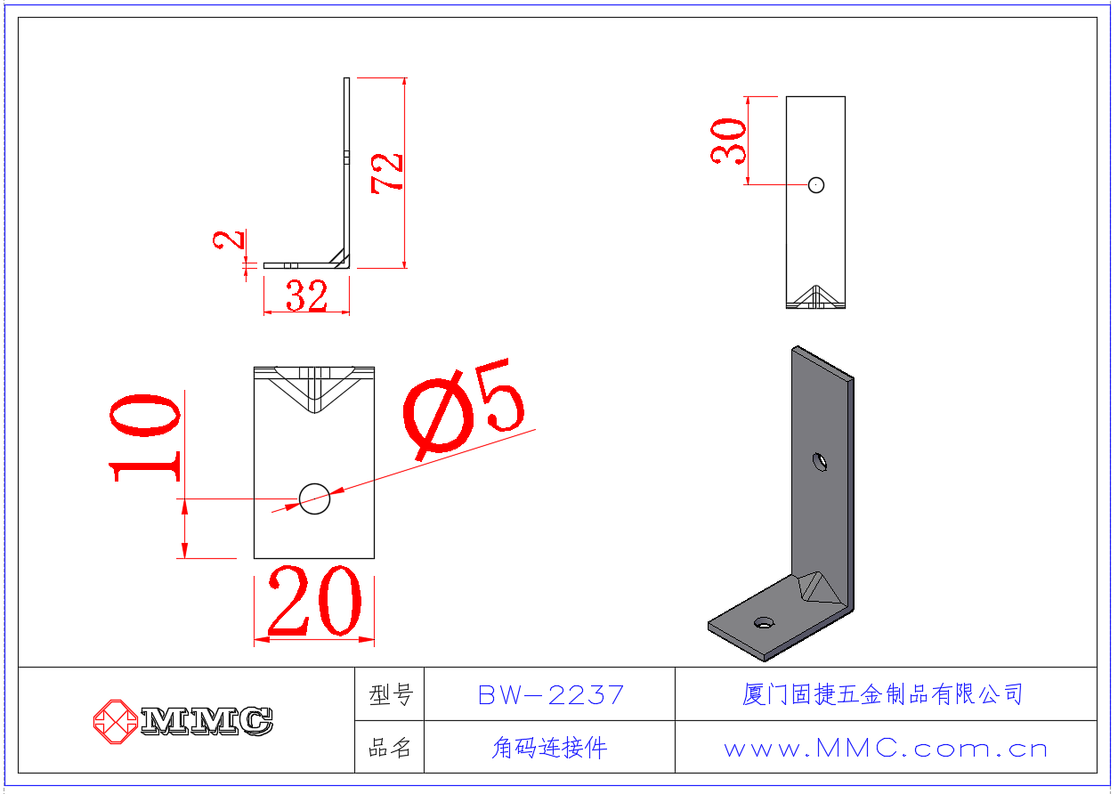首頁(yè) > 產(chǎn)品中心 > L型角碼 > BW-2237 角碼-角鐵-L型連接件-L型鐵件