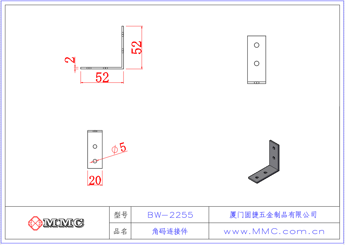 首頁 > 產(chǎn)品中心 > L型角碼 > BW-2255 角碼-角鐵-L型連接件-L型鐵件