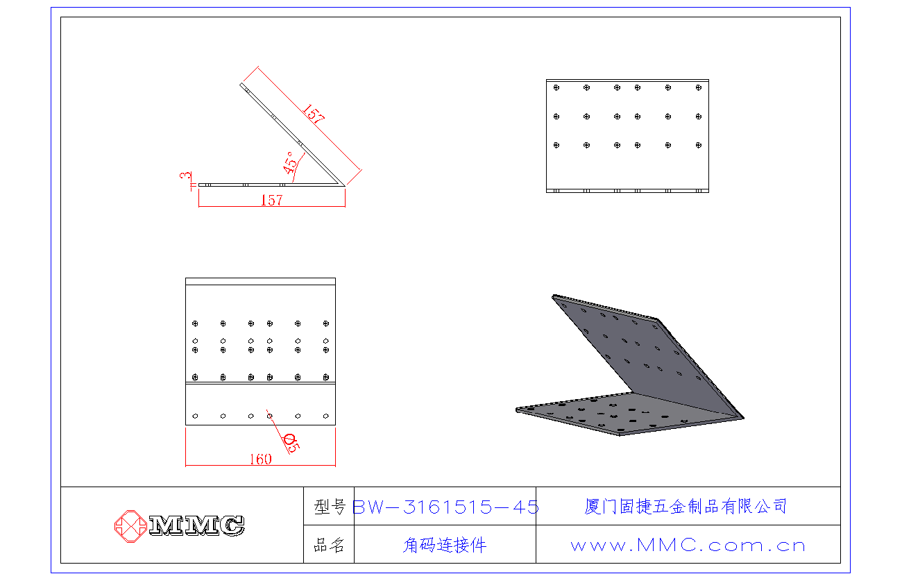45°角碼連接件,可用于次梁與主梁的45度135度夾角連接