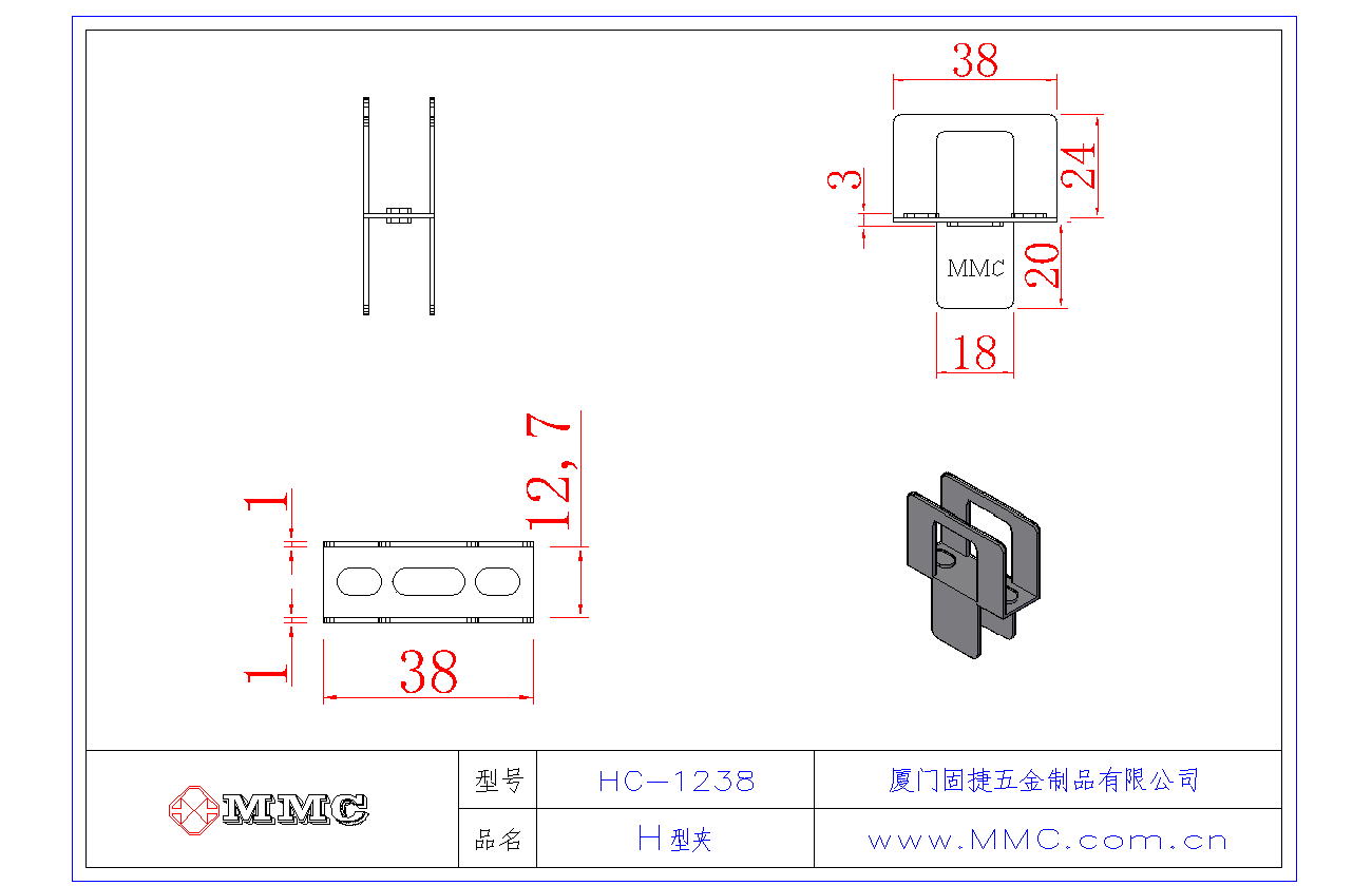 HC-1238 H型夾-H型扣件-Panel Clips-H件-OSB木板夾-Plywood Clips