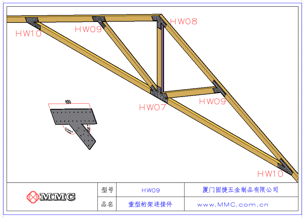 用于重型木結構房屋的桁架上,也可用于不方便采用齒板連接的輕型桁架上。尺寸需要根據實際木材規(guī)格定制