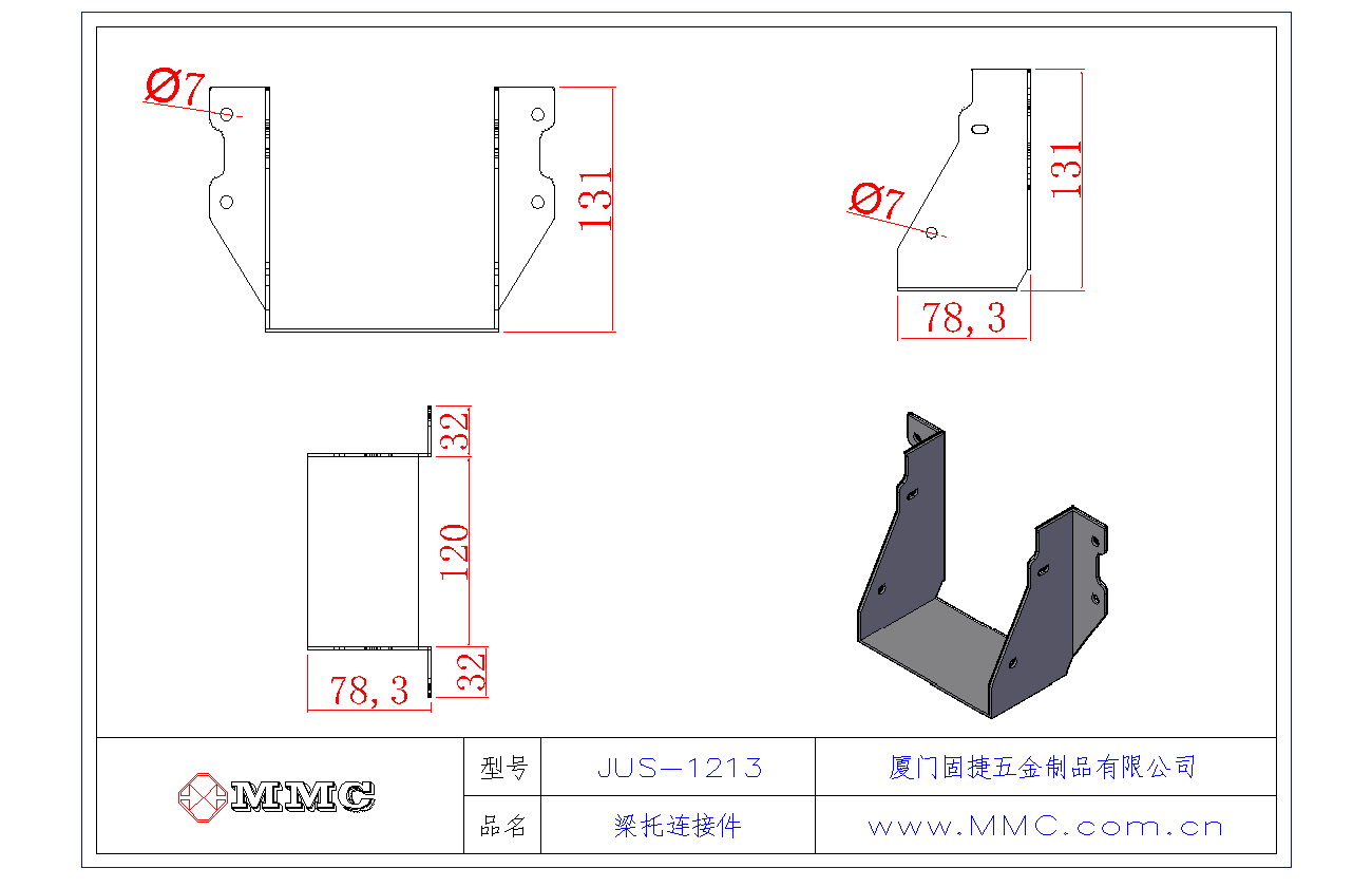 JUS-1213 梁托-U型掛件-龍骨與橫梁水平連接件-木結(jié)構(gòu)別墅金屬配件