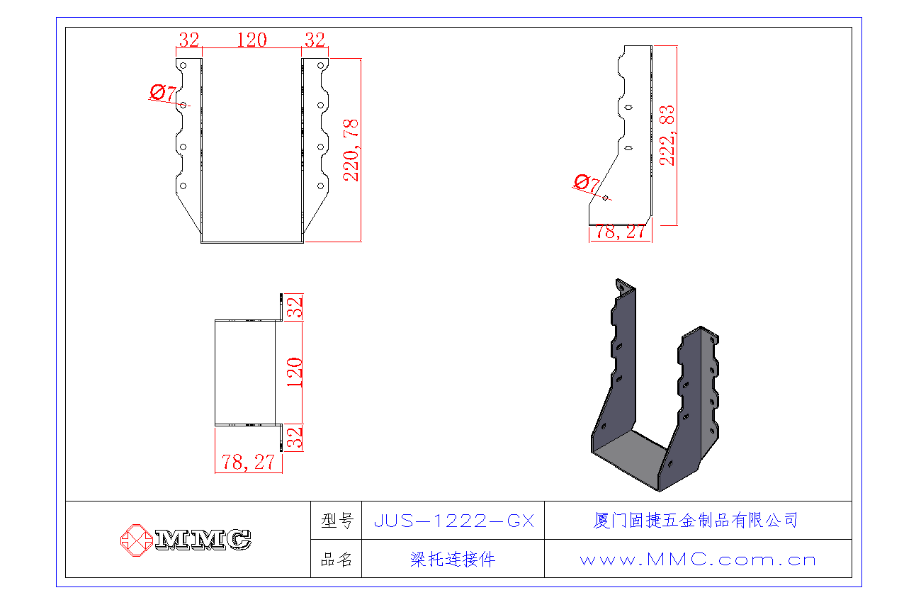 梁托連接件,用于3支2*10(38*235)的合并梁的托掛連接件。