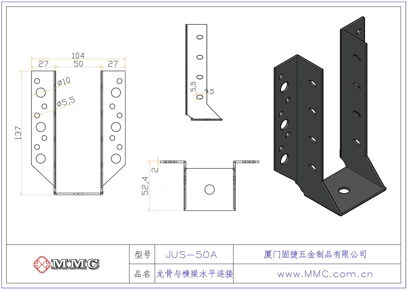 MMC連接件系列,適用于50MM厚度的龍骨與橫梁或龍骨與墻體間的連接