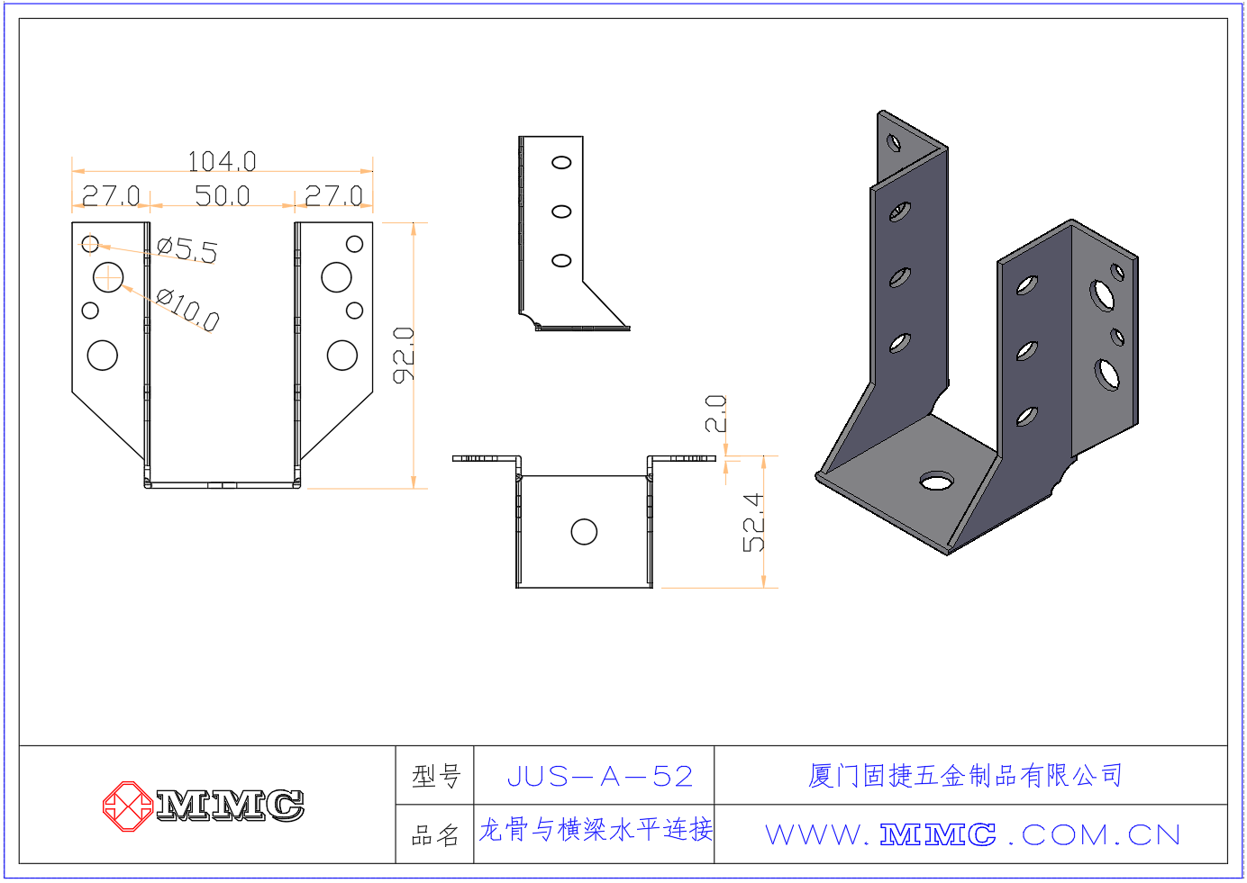 JUS-50B 梁托-U型掛件-龍骨與橫梁水平連接件