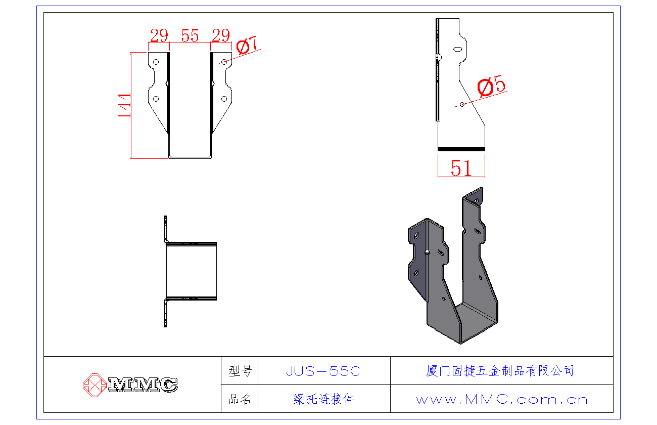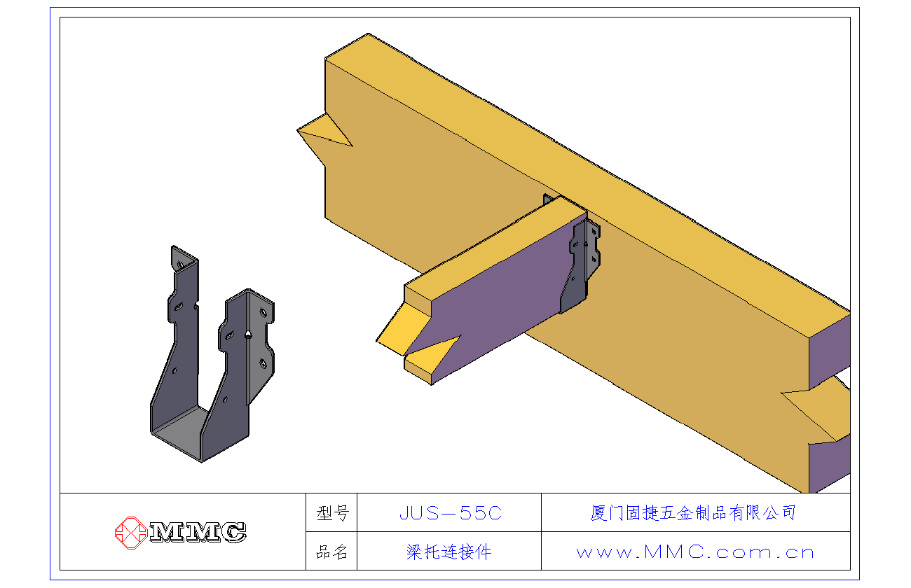 JUS-55C 梁托-U型掛件-龍骨與橫梁水平連接件-木結(jié)構(gòu)別墅金屬配件