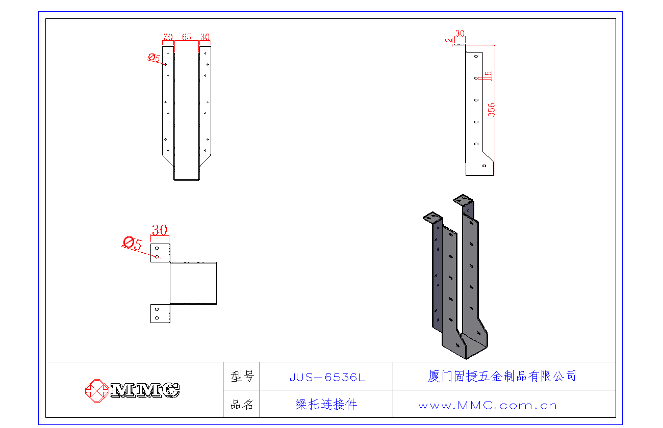 JUS-6536L 工字梁連接件-工字梁掛件-工字梁支架-梁托連接件