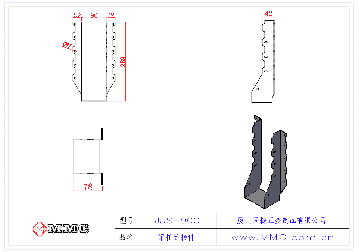 JUS-90G 梁托-U型掛件-龍骨與橫梁水平連接件