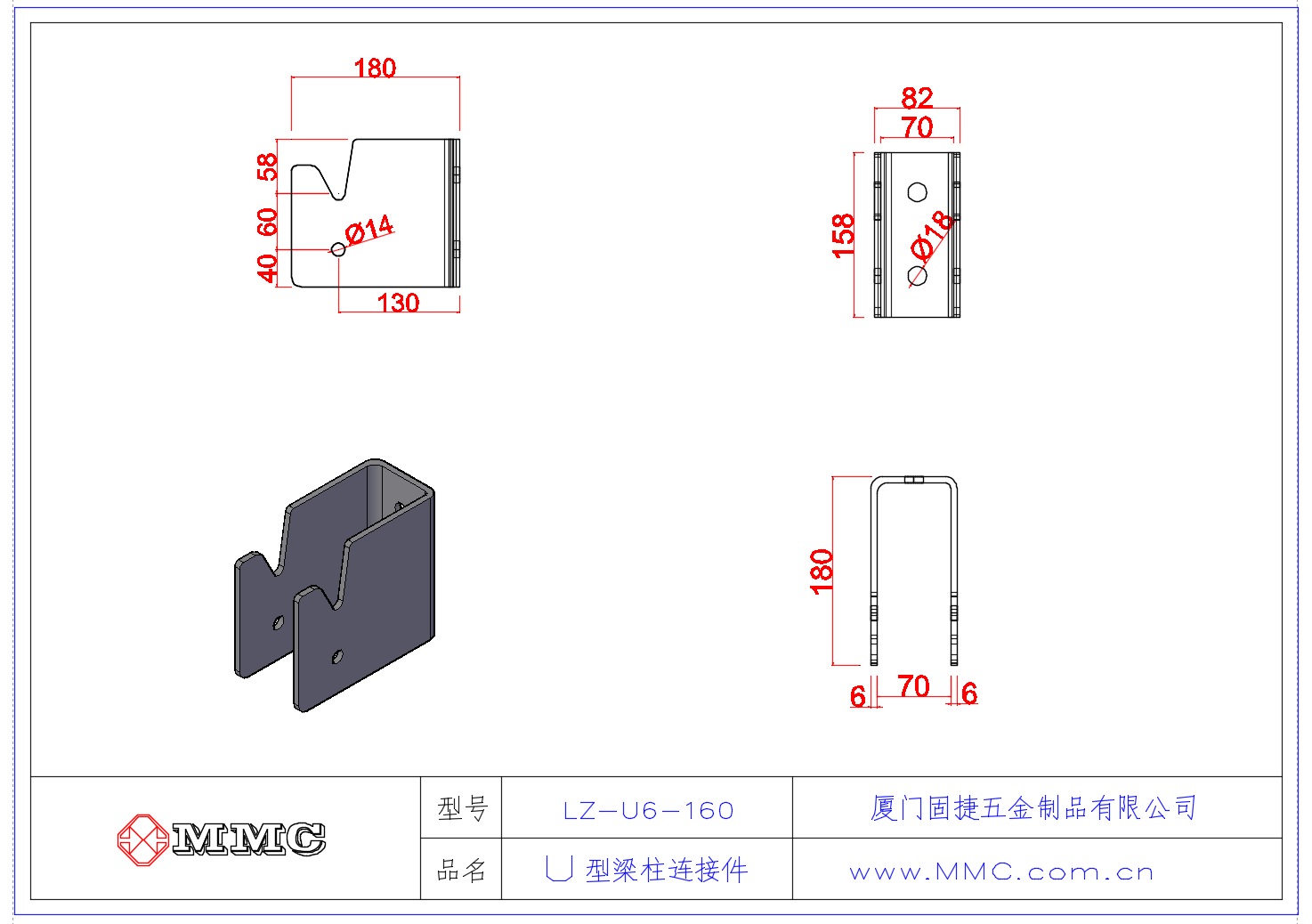 LZ-U6-160 梁柱連接件-日式連接件-隱藏式U型連接件
