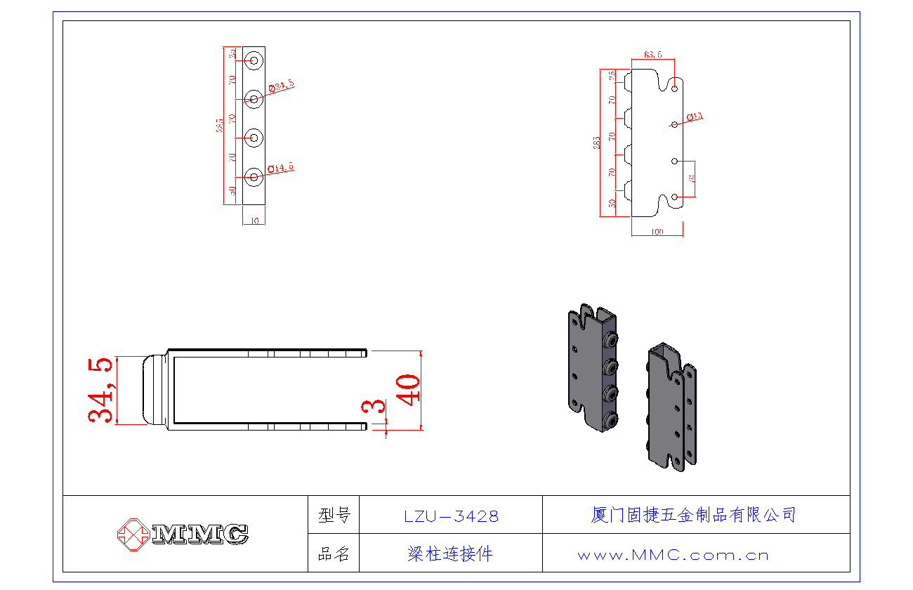 LZU-3428 梁柱U型隱藏式連接件-梁柱連接件-U型連接件-隱藏式連接件