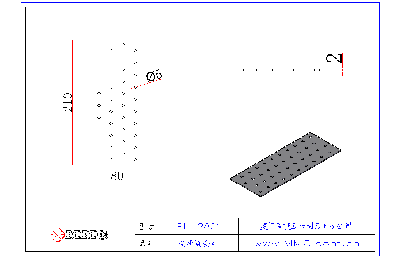 PL-2821 釘板連接件-平板連接件-木屋連接件-屋架連接件-桁架連接件