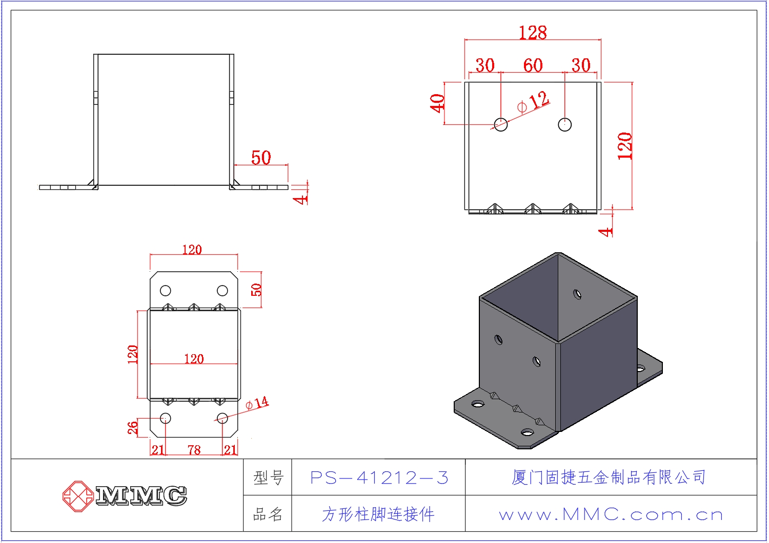 PS-41212-3 柱腳連接件-立柱連接件-方形立柱連接件-柱靴