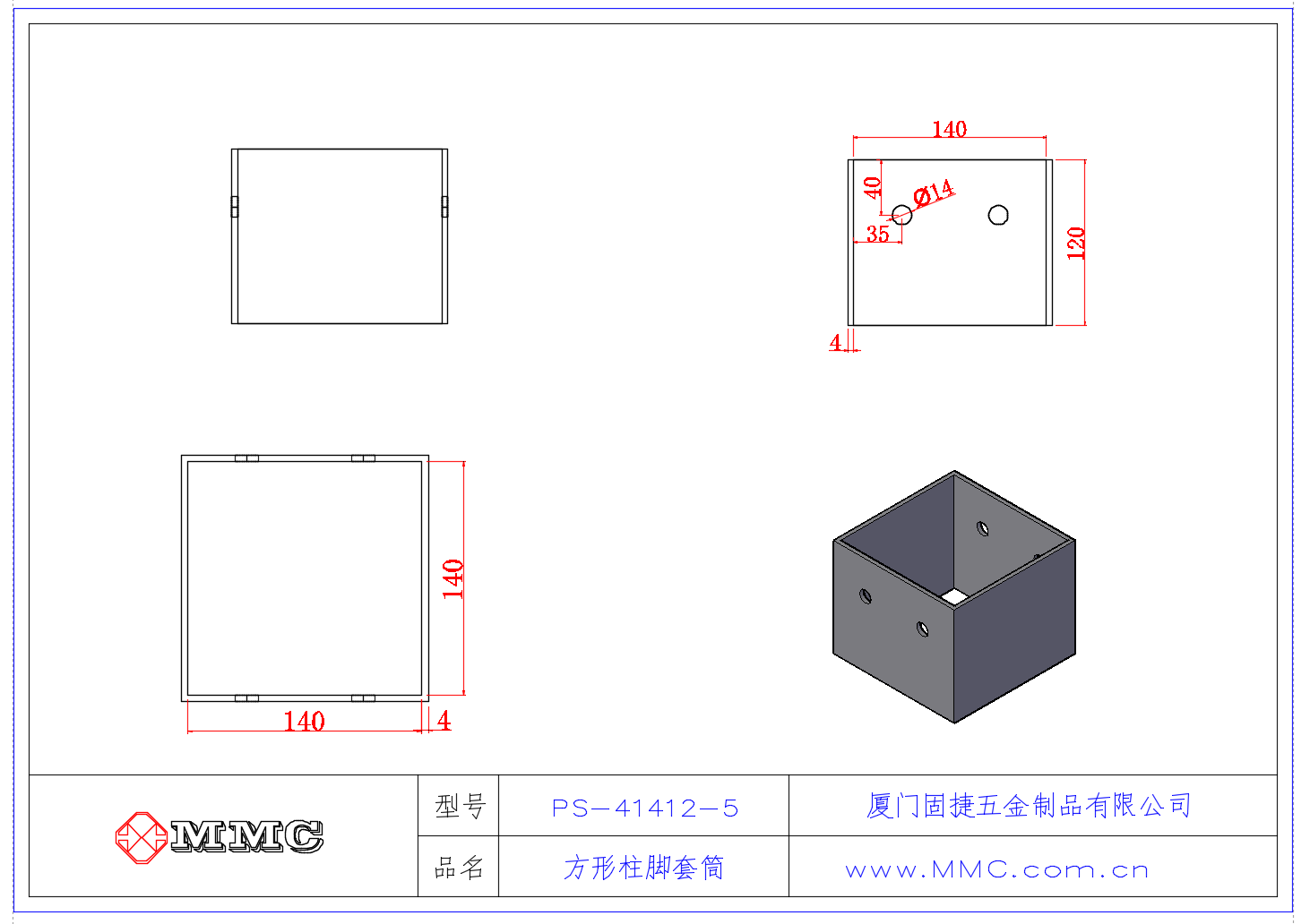 PS-41412-5_柱腳連接件-立柱連接件-方形立柱連接件-柱靴 PS-41412-5_柱腳連接件-立柱連接件-方形立柱連接件-柱靴