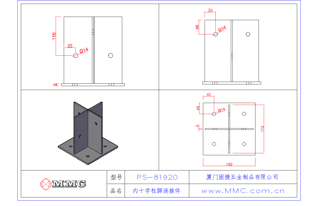 產(chǎn)品名稱(chēng)十字形柱腳連接件-隱藏式柱腳連接件