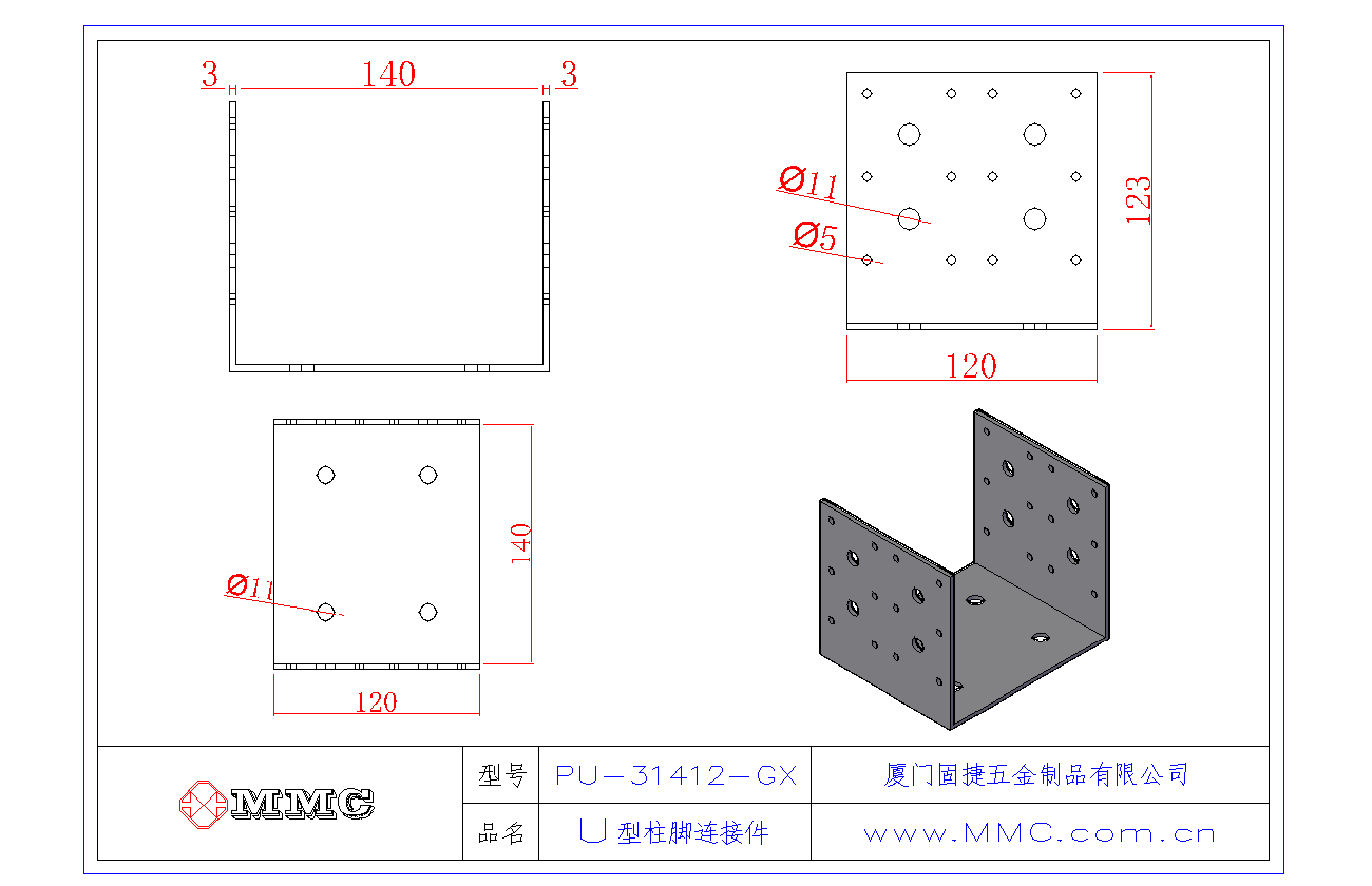 PU-31412 柱腳連接件-U型柱腳連接件-柱靴-U型件