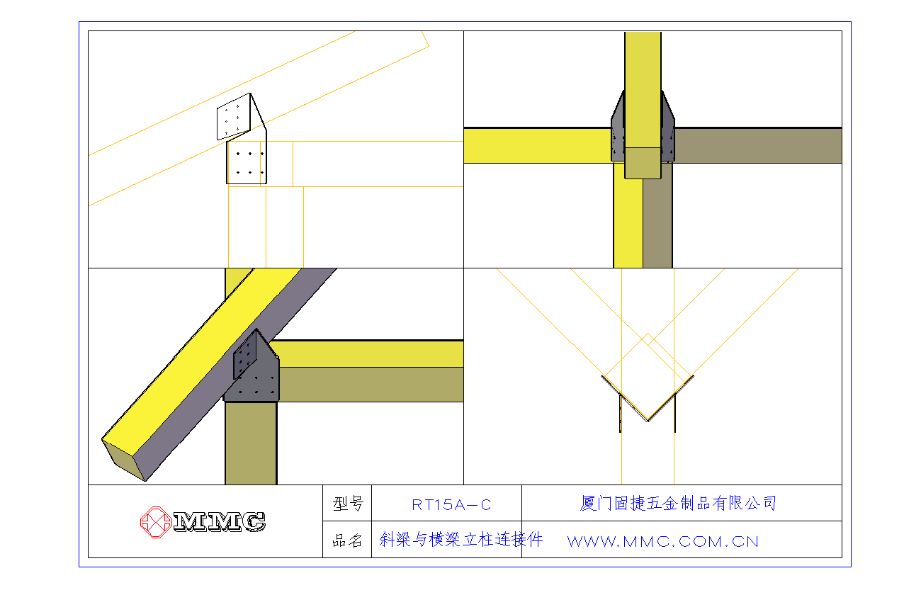RT15A-C 斜梁與橫梁立柱連接件-45度連接件-屋頂墻角連接件
