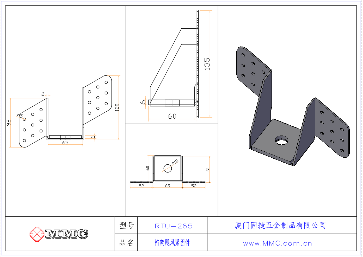 RTU-265L 輕鋼桁架颶風(fēng)緊固件-抗風(fēng)拉件-屋面緊固件