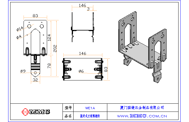 MMC預(yù)埋連接件,適用于尺寸為140*140的立柱與地面的連接